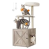 - 【Excellente Stabilité】Fabriqué en bois de qualité et équipé d’un dispositif anti-renversement, cette maison pour chat est moins facile à basculer. Chaque couche de l'arbre peut supporter 20KG et le platequ de la maison de toilettes supporte 50KG.