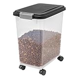 - Comprend une pelle pour recueillir les aliments. et roulettes pour un déplacement facile. Sans aucun doute le moyen le plus pratique de ranger la nourriture de vos animaux de compagnie sans avoir à vous soucier si vous avez bien fermé les sacs.