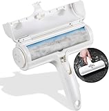 - FACILE À UTILISER: Roulez rapidement la brosse anti poil magique d’avant en arrière, une charge électrostatique se créée, Les rouleaux capturent tous les cheveux d'animal familier et le velours de coton dans le récipient de poussière
