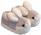 HANDKEI Pantoufles de lapin pour femmes Pantoufles d'animaux drôles Pantoufles en peluche de lapin mignon cadeau (35-38 EU, gris, numeric_35)