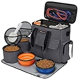 - Le kit de sac de voyage pour chien comprend : 1 sac fourre-tout pour chien, 2 sacs de transport de nourriture pour chien, 1 napperon résistant à l'eau, 2 bols pliables en silicone pour animaux de compagnie (les couleurs du bol sont assorties au hasard).