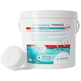 - Seau de 10 kg de chlore 5 actions Bayrol Power 5. Chlore à diffusion lente avec 5 actions. en galets de 250 g. Idéal pour piscine de 30 ³. Traitement multifonction facile, sans sulfate de cuivre. Pas de dépôt, ne trouble pas l'eau.