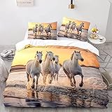 - 🌸 Design unique:Cette 3d housse de couette est un design réversible unique, un côté est un motif d'impression Cheval Animal, le motif est clair et la couleur est vive. Le côté B est un design de couleur blanc pur simple et confortable. Taille: 1 pièce housse de couette + 2 taie d'oreiller 50 x 75 cm