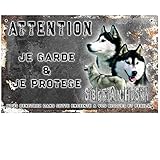 - Pancarte chien de garde Husky avec personnalisation 4 couleurs et double encapsulage de 20 / 12,5 cm.