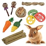 - [Bonne variété de jouets en forme de lapin] Les 21 jouets à mâcher sont une grande variété pour une longue durée de vie et un bon enrichissement. Liste : 1 corde molaire en bois de pommier, 1 corde à timothy, 4 jouets luffa, 2 boules d'herbe timothy avec fleurs, 2 gâteaux d'herbe en forme de lapin, 5 bâtons d'herbe, 1 carotte tissée, 1 maïs tissé, 2 boules en rotin et 2 bonbons en papier.