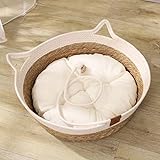 - Coussins doux et oreillers: Les coussins en peluche dans le lit de paniers de chat sont en coton et en tissu en lin, qui est adapté à la peau et respirante, offrant à votre chat un endroit chaud et tentant pour se reposer, jouer ou faire une sieste..Le coton PP interne a une bonne élasticité, n'est pas facile à déformer, est respirant et rapide à sécher, et est facile à nettoyer, garantissant que votre animal a toujours un endroit propre et confortable.