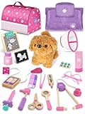 - Jouet Éducatif avec Sac Portable: Notre sac docteur bien conçu aide les enfants à adopter de bonnes habitudes de rangement, et la poignée le rend facile à transporter. Les enfants peuvent enfiler la costume de docteur et la carte d'identité pour jouer le rôle d'un vétérinaire, examiner le chien peluche avec otoscope et stéthoscope, et le traiter avec seringue et médecine. Cela améliorera l'imagination des enfants, la coordination œil-main, les compétences sociales et exercera leur réflexion.